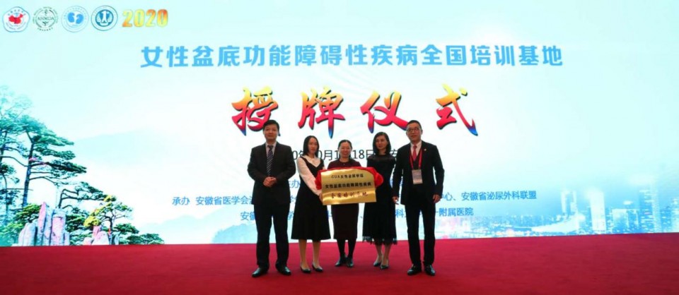 日前在合肥市举办的安徽省第二十一次泌尿男科学术年会开幕式上,中华医学泌尿外科分会常委、全国女性泌尿外科学组组长、女性下尿路疾病及盆底功能障碍性疾病专家联盟主席潘铁军教授将CUA女性泌尿学组:“女性盆底功能障碍性疾病全国培训基地”授予我院泌尿外科。目前在国内,仅有数家综合性三甲医院被授予此基地。“这项授牌是对我们安徽省女性泌尿外科工作的肯定和鼓励,我们将一如既往致力于女性盆底功能障碍性疾病防治,为女性泌尿健康事业添砖加瓦。”江长琴说。