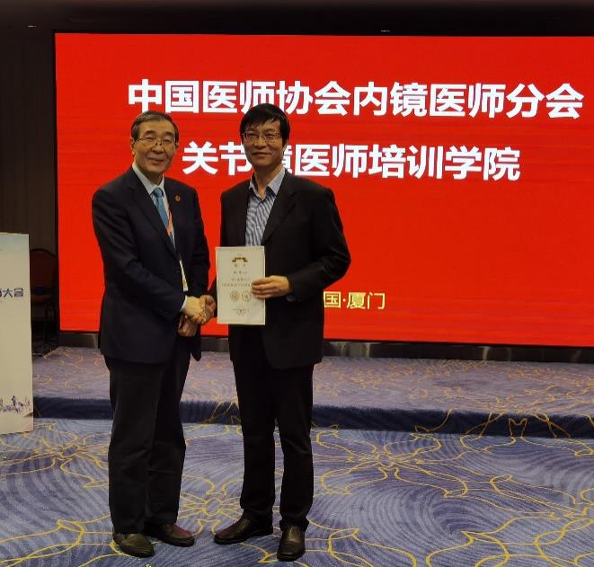 在11月7日举办的中国医师协会内镜医师分会关节镜专委会上,我院骨科运动创伤与关节镜外科获授权成立中国医师协会关节镜医师培训学院安徽省培训基地,徐斌主任担任首任培训中心主任。
