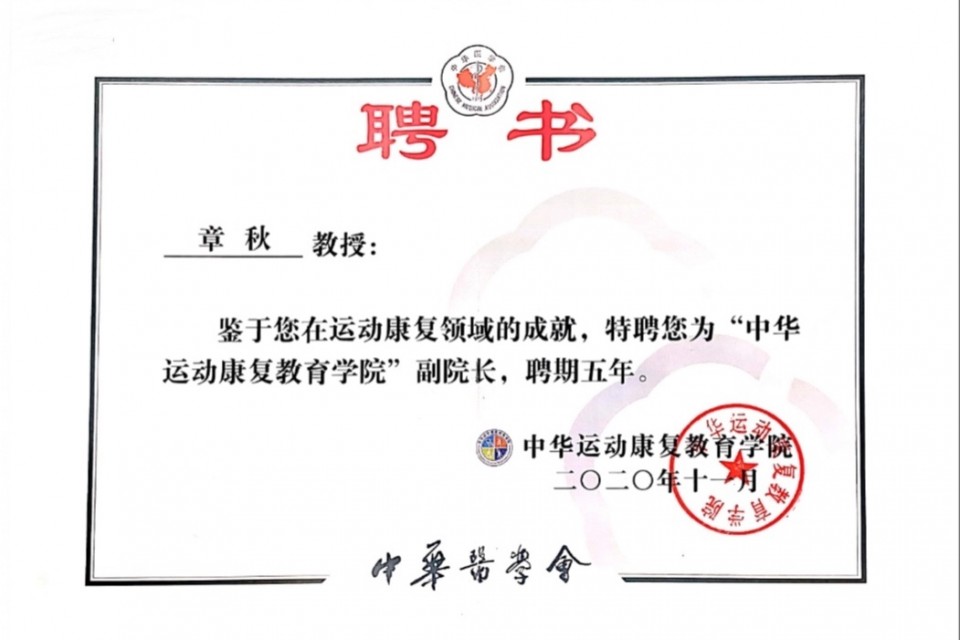 11月7-8日,中华运动康复教育学院成立大会暨首届运动促进健康发展论坛在北京举行。安徽省内分泌学分会主委、我院内分泌科主任章秋教授受聘为中华运动康复学院副院长。