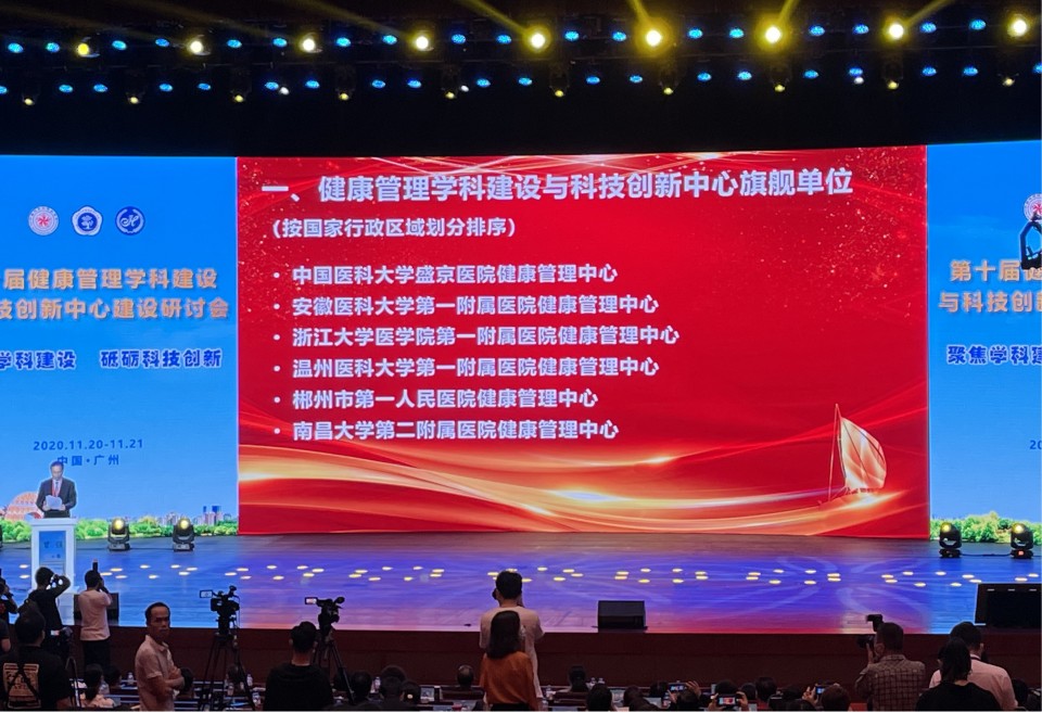 11月21日,“第十届健康管理学科建设和科技创新中心建设研讨会”在广州召开,由中华医学会健康管理分会及中国健康促进基金会颁布的“全国健康管理学科建设与科技创新中心旗舰单位”进行了授牌仪式,我院与北京中日友好医院、山东大学齐鲁医院、西安交大二附院、中国医科大学盛京医院、浙大一附院等国内知名医院的健康管理中心,经过评审答辩、层层选拔,共同获此殊荣。我院健康管理中心团队参加大会并领奖。