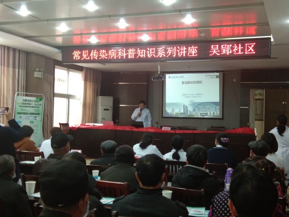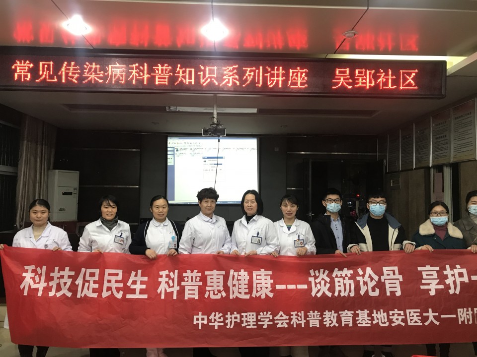 11月27日,我院呼吸科、骨科、感染科医护人员联合四里河社区卫生服务中心家庭医生团队前往合肥吴郢社居委开展常见传染病科普知识系列讲座。参加此次活动的有医院护理部主任胡少华、呼吸与危重症二病区护士长张慧、呼吸与危重症三病区护士长严丽、干部呼吸与危重症科护士长谷静、呼吸与危重症西一病区护士长钱朝翠、呼吸与危重症西二病区护士长胡玉萍、感染科二病区护士长周翠梅、脊柱外科护士长祁金梅、部分临床护理骨干以及急诊内科党支部、呼吸内科党支部、机关第六党支部的部分党员;呼吸与危重症医学科主治医生武沛佩;下沉四里河社区服务中心的高年资护士程秀梅;四里河社区服务中心医务科科长廖凯以及家庭医生团队成员。