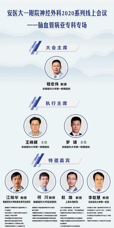 11月30日-12月6日,安徽医科大学第一附属医院神经外科脑血管病亚专科系列学术会议在合肥举办。本次学术活动由安徽省医师协会神经外科分会、安医大一附院神经外科主办,结合当前新冠疫情防控要求,在往届安徽省脑血管病论坛+神经介入诊疗技术培训班的基础上,增加了脑血管病线上会议环节,也是我院神经外科2020系列线上会议的重要专场之一。