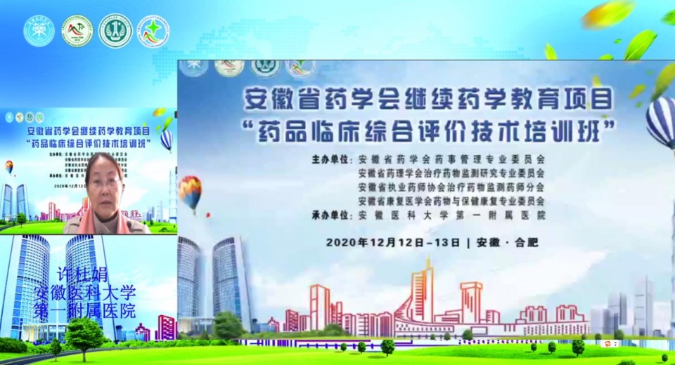12月12日-13日,由安徽省药学会药事管理专业委员会、安徽省药理学会治疗药物监测研究专业委员会、安徽省执业药师学会治疗药物监测药师分会、安徽省康复医学会药物与保健康复专业委员会联合主办,我院承办的安徽省药学会继续药学教育项目“药品临床综合评价技术培训班”在合肥成功举办。本次培训班主要采取线上方式进行,近千人在线参会学习、交流。