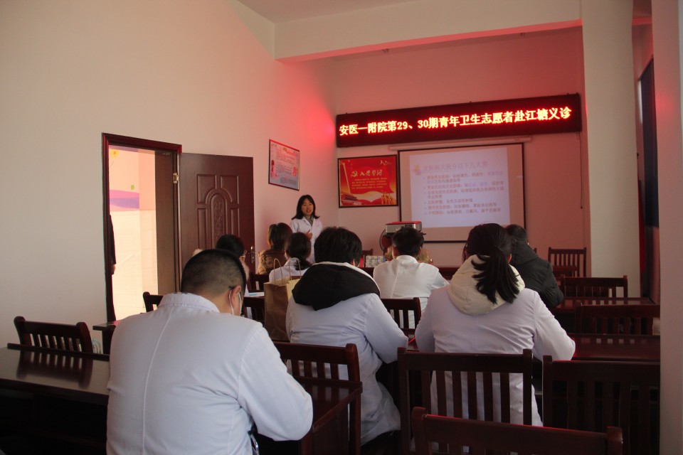 12月11日-12日,第29、30期青年卫生志愿者医疗队来到太湖县江塘乡卫生院义诊咨询,并为当地基层卫生技术人员开展了系列授课交流活动。