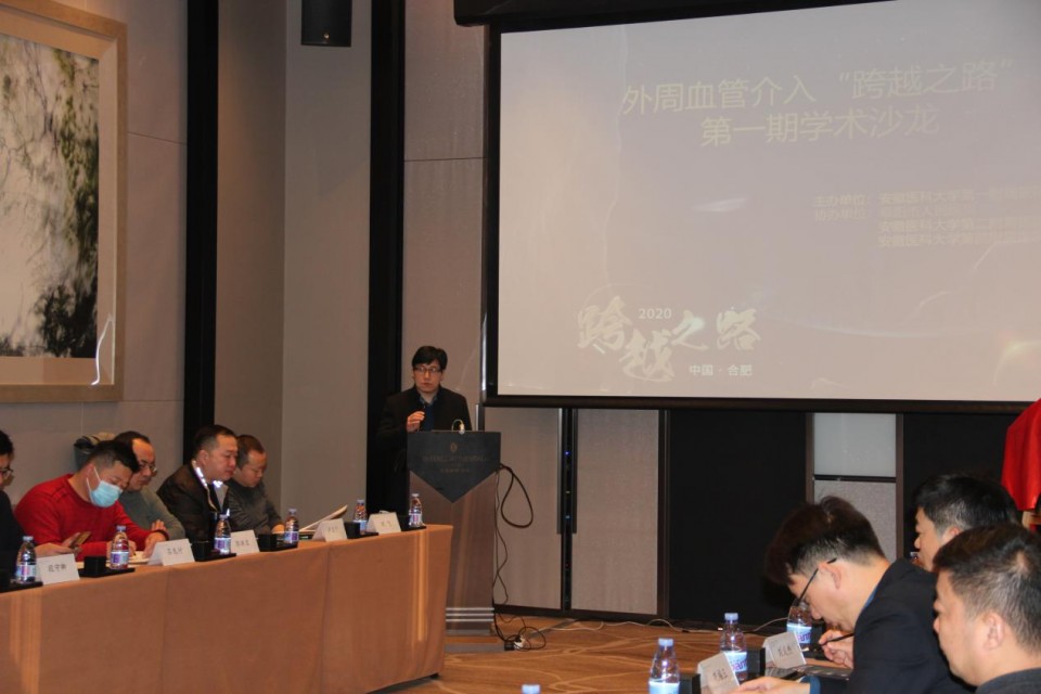 12月20日上午,由我院血管外科主办,安医大二附院、安医大四附院及阜阳市人民医院血管外科协办的外周血管介入跨越之路学术沙龙暨安徽医科大学第一附属医院Crossroads培训基地成立大会在合肥举办。我院血管外科行政主任陈智勇教授主持会议,医务处副处长汪安勇致辞。来自省内四家医院的40余名血管外科骨干参加了现场学习,并通过线下与线上相结合的方式,邀请到鼓楼医院王炜教授及长海医院袁良喜教授带来学术前沿的热点分享。