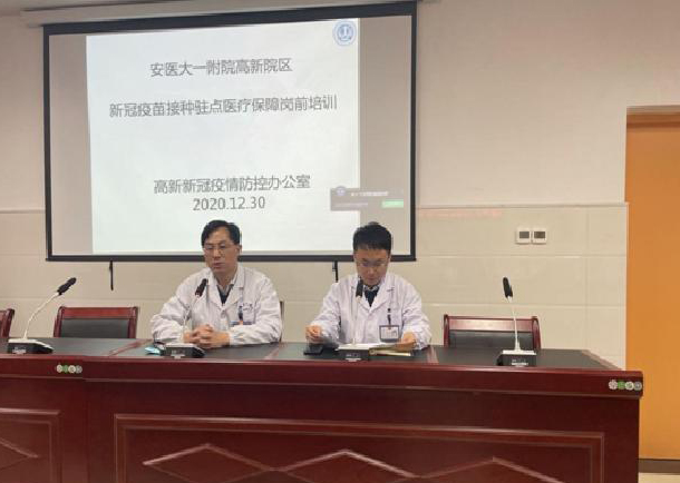 为贯彻落实安徽省疫情防控办公室和高新管委会关于新冠病毒疫苗接种工作有关要求,确保接种工作平稳、有序开展,12月30日下午,高新院区在药剂科会议室举行新冠疫苗接种驻点医疗保障培训,高新院区副院长陈旭林、高新院区医务部部长李珅、急诊EICU高新病区副主任郑云和负责新冠疫苗接种驻点医疗保障的40名医生参加了培训,会议由李珅主持。
