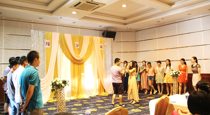 活动开始后,现场气氛热烈。单身青年男女主动自我介绍,通过特长表演充分展示个人形象、才艺。在随后进行的“英雄美女”、“你来表演我来猜”、“星光大道”、“信任之旅”等交流性、配合性强的活动环节中,大家更是积极踊跃参与,寻找自己的有缘人。整场活动欢声笑语不断,现场不断传出牵手成功的佳音,团委不仅特意布置了一堵“缘分墙”,为参加活动的青年们提供倾诉和交流的平台,还细心地为每一位参加活动的青年男女准备一份温馨的小礼物,便于他们赠送给心中的“有缘人”。
