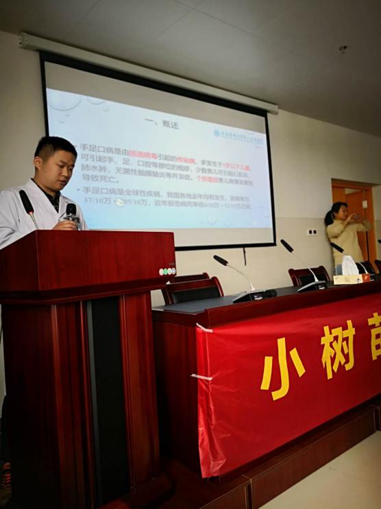 2019年4月27 日上午,“传染病防治知识健康教育大讲堂2019合肥行”在高新院区举行,本次活动由高新院区医务部主办,高新院区医务部网报办承办,此次活动旨在营造全民健康预防,弘扬医疗健康文化,倡导奉献爱心,关注自我健康,以宣讲方式倡导市民关注传染病,通过宣讲活动唤起全社会对传染病防治知识的理解、认识。此次传染病防治知识健康教育大讲堂2019合肥行之第一讲--手足口病的主讲人是高新院区儿科黄经纬医生和高新院区医务部网报办健康教育讲师程艺。本次活动邀请高新杨林社区6-10岁儿童及家长60余人参加,通过活动,大家对手足口病的预防和如何正确的洗手有了更正确的认识。