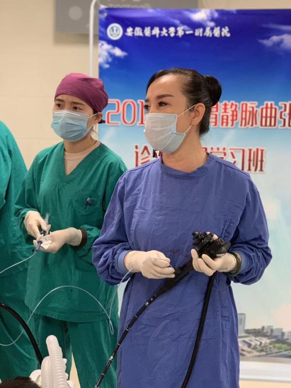5月18-19日,国家级继教“2019食管胃静脉曲张进展学习班”(编号2019-03-03-063(国))在高新院区消化内镜中心成功举办。会议由我院消化内科许建明教授、胡乃中教授、李敏教授共同主持,参会代表150余人。本次学术会由消化内科孔德润教授申办,着眼于创新与发展的主题,邀请到复旦大学附属中山医院马丽黎主任、上海交通大学附属新华医院张毅主任、南京鼓楼医院诸葛宇征主任、西安高新医院宋瑛主任及济南军区总院孙自勤主任等一批知名专家,对肝硬化内镜治疗的新技术、介入治疗肝硬化相关疾病、以及痔静脉曲张内镜治疗的话题,进行了深入的讨论。学术会上进行了丰富的手术演示,同时在2个手术诊间、3个小时内完成了16台食管胃静脉曲张麻醉状态下内镜治疗。高强度的密集手术,得到高新麻醉科及本部内镜室的全力支持,也使高新内镜中心年青的护理团队得到了锻炼,获得省外专家的一致好评。