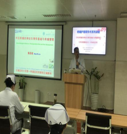 3月28日下午,高新院区消化内镜中心会议室座无虚席,护士长及各科室的疼痛促进护士参加了本次疼痛相关知识培训。会议由高新院区护理部丁萍主任主持,她强调了护理人员在疼痛管理管理中的作用与重要性,并邀请了高新院区麻醉科鲁显福博士就术后疼痛的神经生物学基础及疼痛管理进行了深入浅出的精彩授课,同时麻醉科护士汪燕也从PCA(病人自控镇痛泵)的相关知识进行详细的介绍。在场的学习人员纷纷表示受益匪浅。
