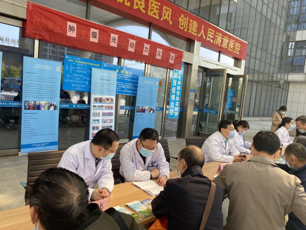 上午九点,肿瘤光动力治疗中心周炎主任医师、肿瘤放疗科杨林主任医师、肿瘤内科张从军主任医师,焦洋副主任医师、消化内科鲍峻峻副主任医师、肝胆胰外科陈江明主治医师及肿瘤光动力治疗中心李路医师等多位专家和医务工作者参加了义诊活动。活动现场,前来义诊的患者咨询肿瘤相关的疾病,专家们耐心的为患者答疑解惑,检查诊治,治疗等方面的指导。受到广大群众的欢迎和好评。