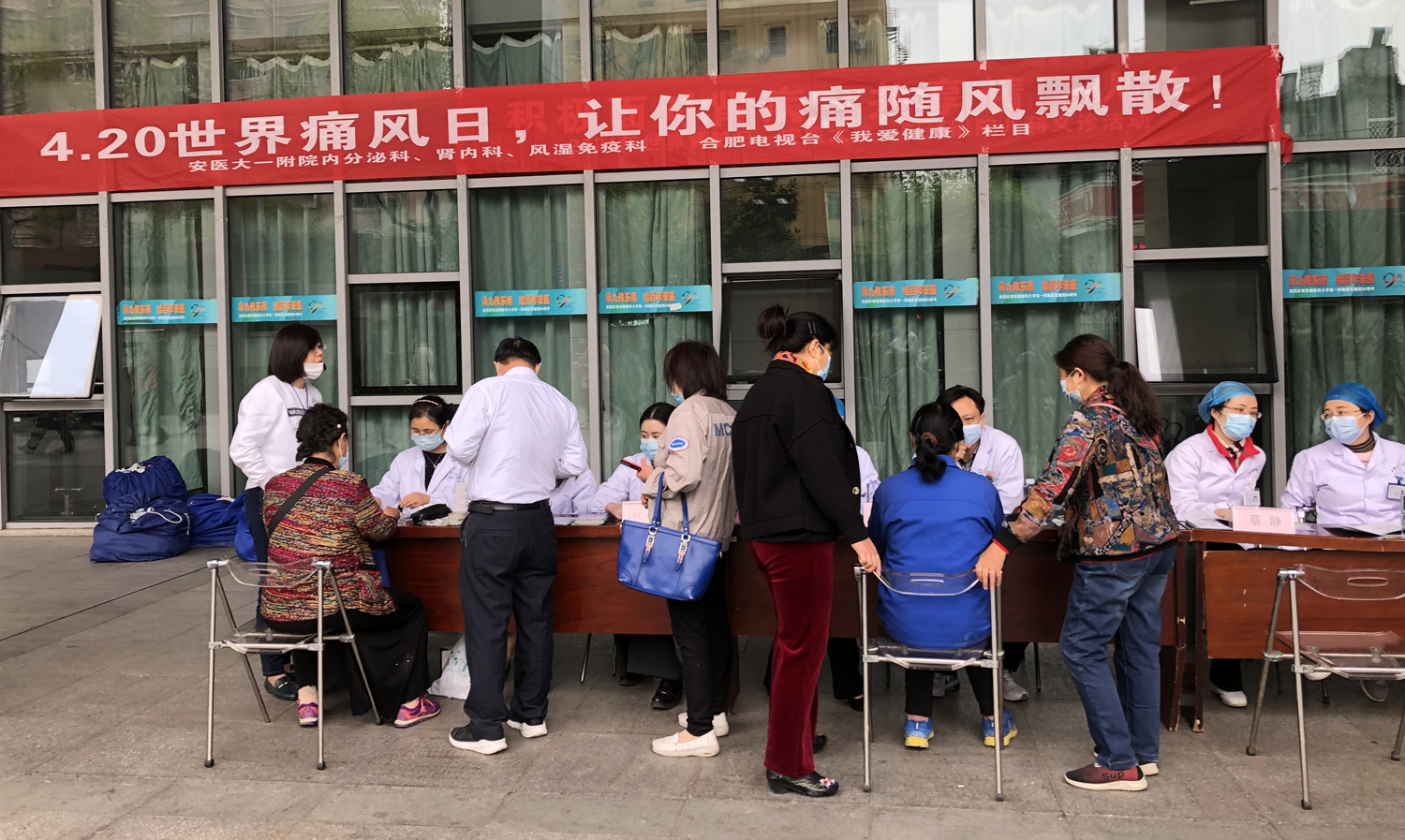 4月20日上午8点,由安徽省医学会内分泌学分会痛风与高尿酸血症学组主办,我院内分泌科牵头,肾脏内科,风湿免疫科共同承办的“4.20世界痛风日,让你的痛随风飘散”义诊活动在绩溪路院区门诊楼前如期举行。