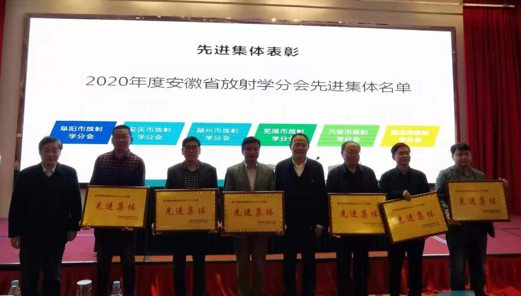 刘斌主任代表放射学分会为新当选的青年委员会副主任委员及各学组组长、副组长颁发证书。青年委员会主任委员由放射科学分会主任委员刘斌兼任。刘斌对青年委员会及各专业学组成立表示祝贺,对于后续青年委员会以及各学组工作安排提出了要求,希望青年委员会以及各学组保持优良传统,为安徽省放射医学的发展努力,为安徽省老百姓健康谋福利。会后,刘斌主委代表放射学分会向2020年度先进地市级分会颁发奖牌,肯定各地市级分会在过去一年所取得的成绩。