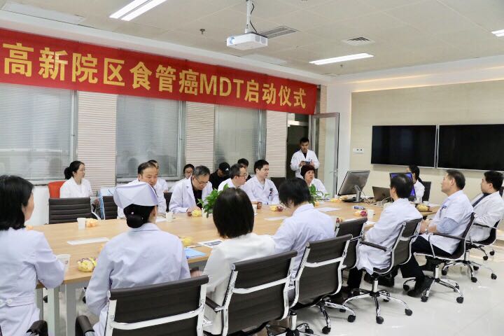 2019年4月8日下午高新院区食管癌MDT在门诊二楼多学科会诊中心举行启动仪式。由高新院区肿瘤内科、普胸外科、消化内科、肿瘤放疗科、中西医结合肿瘤科、医学影像科、病理科等专家组成的食管癌MDT,旨在给食管癌患者提供全方位、专业化、规范化、个体化的诊疗方案。