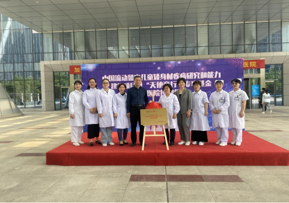 由国家卫健委卫生发展研究中心立项,中华少年儿童慈善救助基金会协办,我院承办,中国流动留守儿童矮身材疾病研究和能力建设项目暨矮身材疾病救助公益计划(以下简称“天使童行”)定点我院 。5月1日上午,中华少年儿童慈善救助基金会天使童行专项基金授牌仪式在高新院区正式举行。医务处副处长高潮兵、儿科主任胡鹏、儿童生长发育专家潘道香、刘晓静、卜笑松、中华少年儿童慈善基金会的代表们参与授牌仪式。
