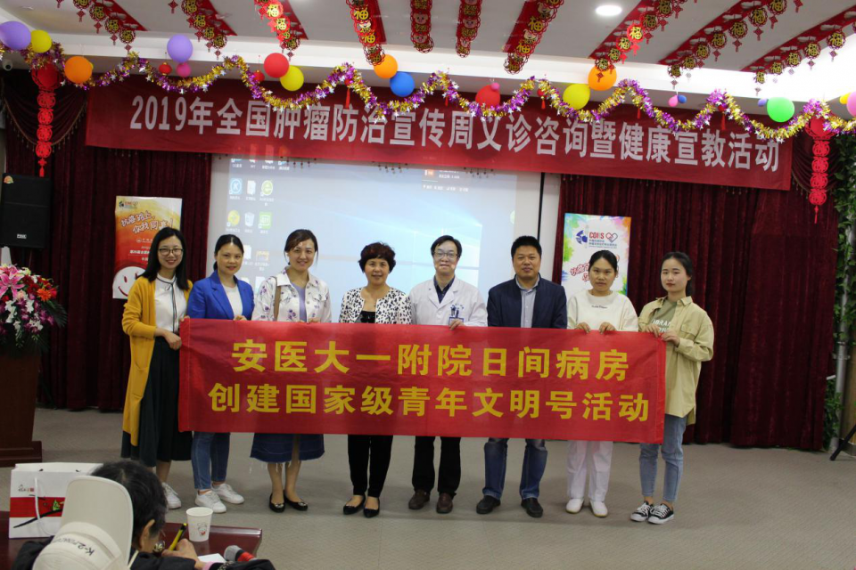恰逢全国肿瘤防治宣传周,4月17日,在日间病房主任张帆的带领下,安徽省肿瘤防治所、肿瘤内科、放疗科、干部心内科以及日间病房的医护人员一行前往太阳湾养老院开展肿瘤相关知识讲座及义诊活动。为积极创建国家级青年文明号树立良好的社会共益形象。