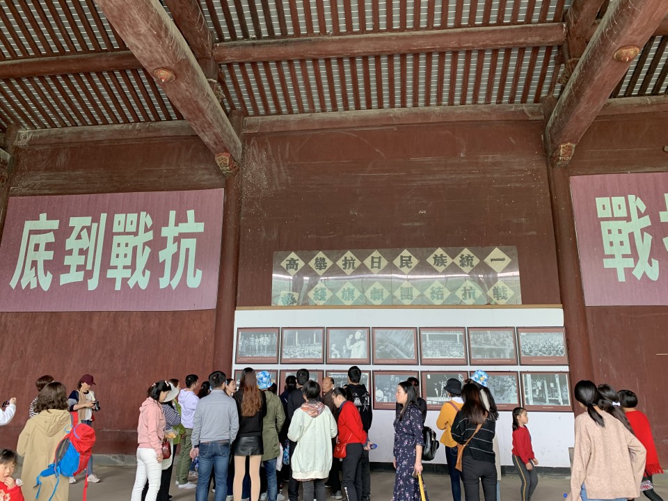 随后我们一行又来到了军部大会堂旧址,这里原先是云岭村陈氏宗祠,走进大会堂,映入眼帘的事是主席台,一眼望去,当年的先烈们发表演说的情景历历在目。走进大会堂,映入眼帘的是“团结抗战、抗战到底”这八个大字,左右两边的墙壁上也分别写着“孝”“义”“忠”“节”四个大字,向大家展示了新四军广大指战员为民族的独立与解放而斗争的光辉历程。我们看着,拍着照片,但心中的激动之情却久久不能平复。这段历史真实的在我们面前呈现出来,大家无不为这些革命先烈的爱国情怀所深深震撼。