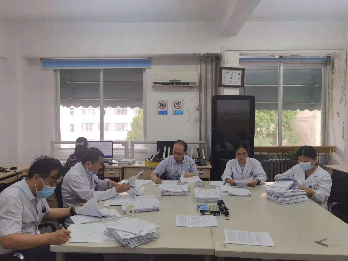 为切实发挥DRGs医保政策的“指挥棒”作用,达到规范诊疗行为的目的,7月7日下午,医务处联合医保办组织13位临床专家就第一季度“高倍率组”病历进行抽查。检查内容主要为病历首页诊断填写正确性和完整性、诊疗行为规范性、病程记录质量和知情同意签署情况等。点评专家对照评分表仔细认真核查,病案管理科主任就病历首页诊断填写疑问给出专业指导意见,医保办工作人员解答DRGs医保付费政策相关规定。