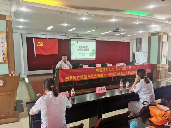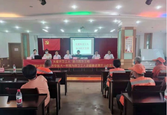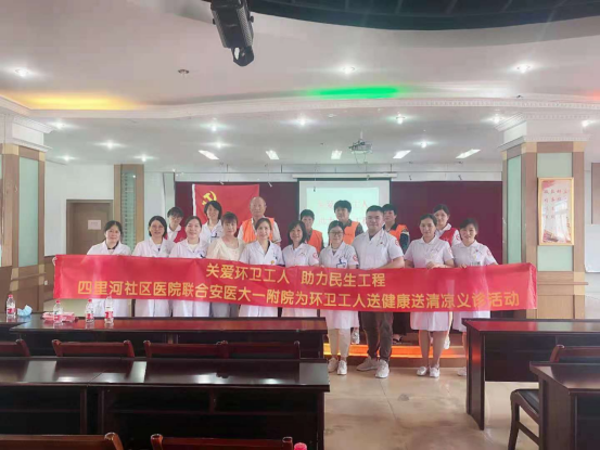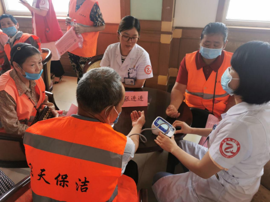 酷暑时节,环卫工人作为城市的“美容师”坚守岗位,守护着我们美丽、整洁的城市。为关怀环卫工人身体健康,感恩环卫工人辛苦付出,7月9日上午,我院急诊医学科联合四里河社区医院、桃花社区开展为环卫工人健康义诊活动,为环卫工人们进行健康义诊和科普宣教。