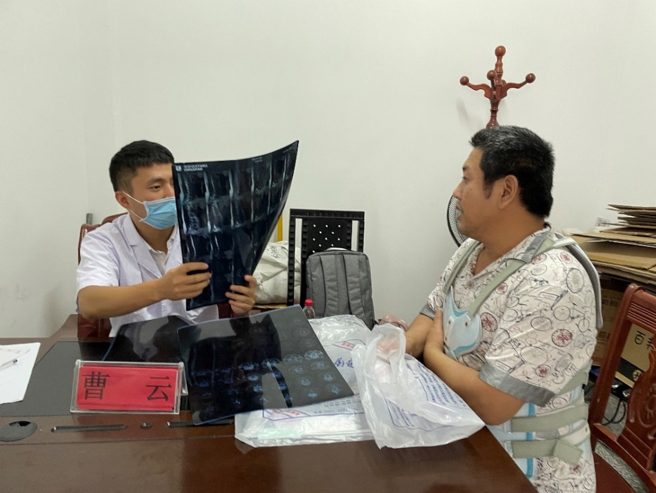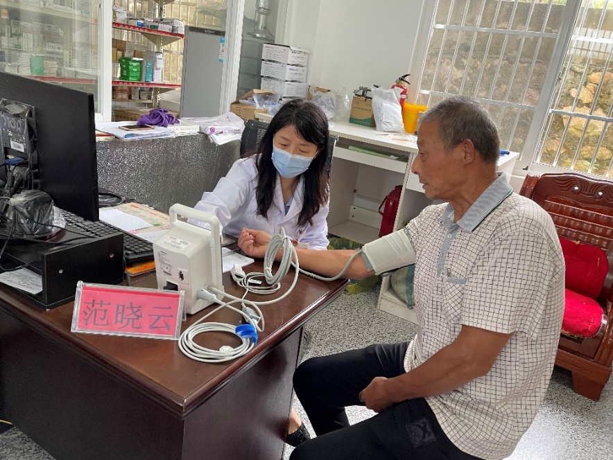 范晓云教授等医疗队一行走访村卫生室,了解当地老年患者疾病管理情况,和村卫生室充分交谈沟通,现场建立了长期联络机制。在随后开展的义诊活动中,医疗队通过拉家常方式普及医学健康常识和提供健康咨询,76岁老太太激动地说道:“这些专家大老远跑过来免费为我们看病,实在了不起!专家们的服务我很满意!”义诊活动增进了基层群众感情,提升了群众们的健康素养,受到了当地政府和群众一致好评。