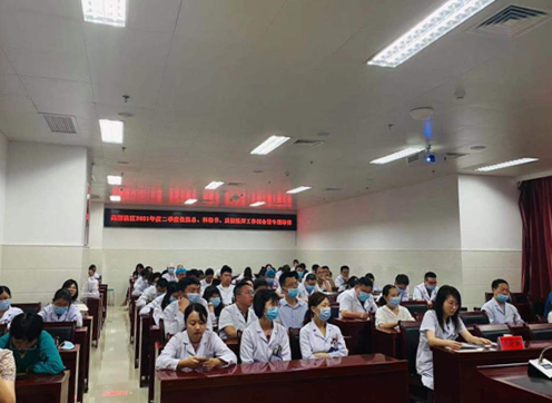 7月22日下午,高新院区在药剂科会议室召开2021年二季度住院总、质控医师工作例会暨抗菌药物与DRGs培训会议。高新院区副院长李平,医务部工作人员,高新院区任期内住院总、科秘书,高新院区任期内质控医师,高新院区中青年医师参加会议,会议由医务部主任李珅主持。