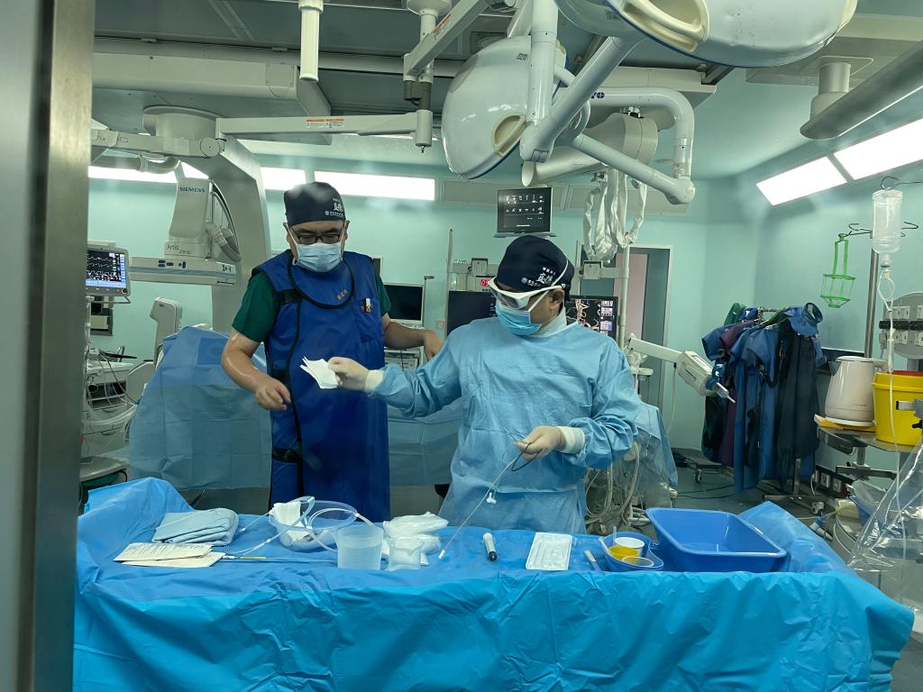 血管外科先后轮番直播展示4台血管外科微创手术。李永生副主任医师成功演示1台股浅动脉长段闭塞病变,术中顺利开通股浅病变,并没有常规植入支架,减少了术后支架相关并发症。另一台腘动脉病变,顺利开通病变,同时予以置管溶栓,手术顺利。张志功副主任医师完成2例下肢深静脉血栓病例,减少下肢深静脉血栓后遗症发生。