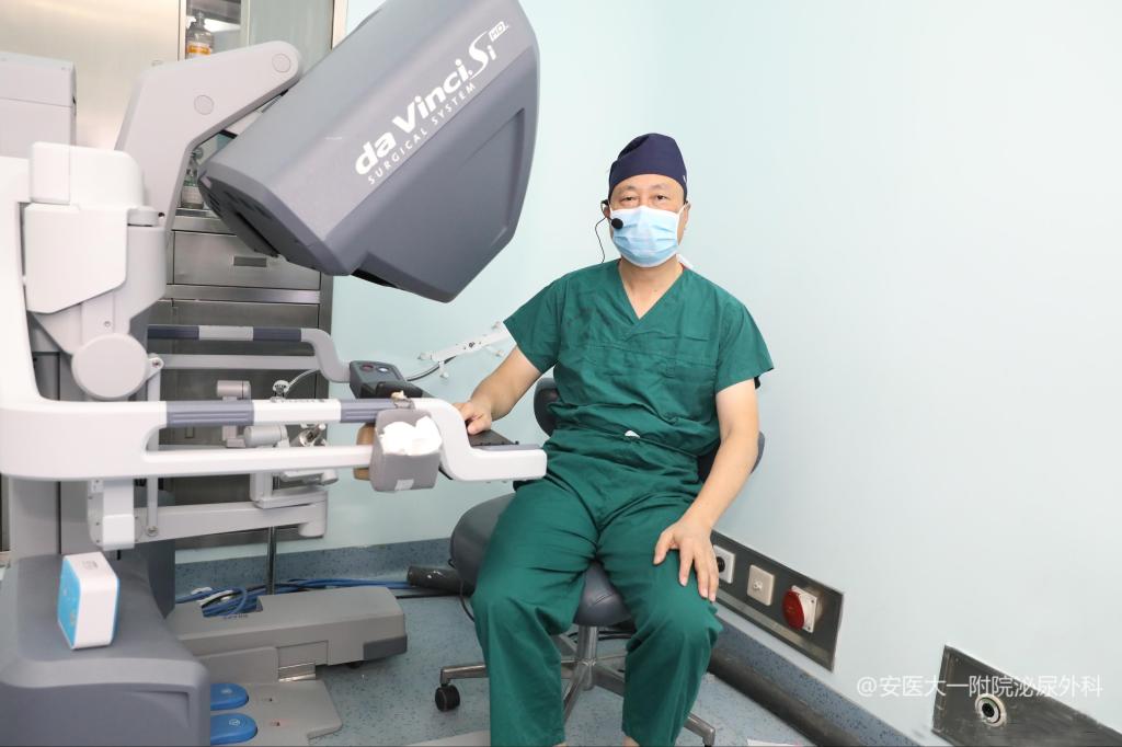 达芬奇机器人辅助手术系统在梁朝朝教授的操作下,率先完成了一台机器人辅助腹腔镜前列腺癌根治术,手术仅用时1小时,快速高效地解除了病人的痛苦,展现出安医大一附院泌尿外科速度。随后,周骏副教授也先后完成了机器人辅助下前列腺癌根治术、肾脏肿瘤肾部分切除术。肿瘤亚专科方面,施浩强副主任医师、邰胜副教授、杨诚副教授先后进行了多台不同类型的膀胱癌根治+回肠代膀胱术。杨诚副教授、王伟副教授、邹志辉副教授及宋正尧主治医师利用5G/4K智能腹腔镜分别完成了右肾根治性切除术、膀胱肿瘤剜除及肾上腺肿瘤切除术。高新院区泌尿外科也在同期进行手术直播转播,方卫华主任医师、陈金虎副主任医师先后完成了腹腔镜下前列腺癌根治术、肾癌根治术。