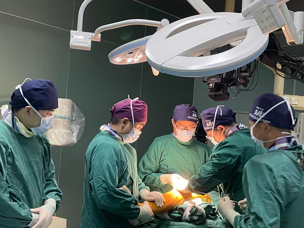 本次直播,创伤骨科技术带头人王刚专家团队首先展示了一例复杂胫骨平台骨折的切开复位内固定手术,手术仅用1小时30分钟,即完成了累及胫骨平台三柱的骨折复位及固定。隋聪副主任医师完成了一例半伸直位髌上入路胫骨骨折闭合复位髓内钉内固定术,通过小切口,微创的方式将髓内钉置入,恢复了胫骨的力线和长度。