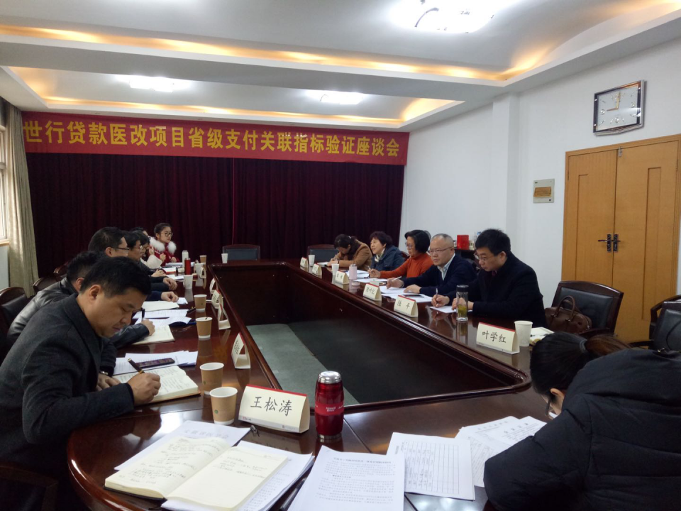 2月26日上午,在安徽省医学会三楼会议室召开了世银贷款医改促进项目省级支付关联指标验证座谈会,国家卫健委统计信息中心张耀光处长、安徽省政策法规处处谢瑞瑾处长、黄利勤副调研员、基层处孙闽主任、安徽省医学会王学东秘书长出席会议。省医学会糖尿病分会主委、我院内分泌科主任章秋教授、内分泌科胡红琳主任医师参加座谈会。