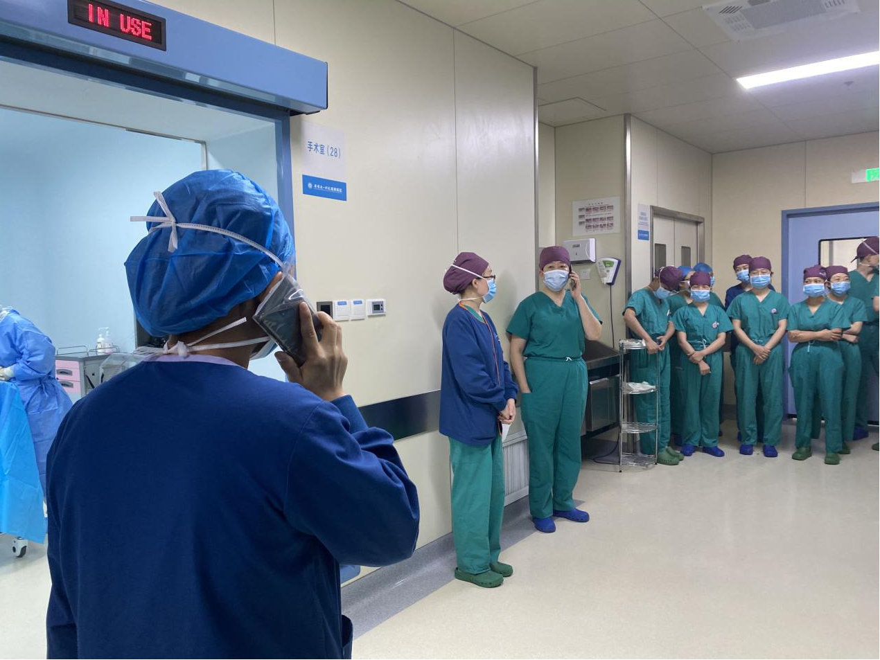 此次应急演练设定的场景是一位确诊宫外孕、核酸检测阳性的大出血手术。演练分别从手术前准备、手术中隔离防护、手术后隔离防护等环节进行手术全过程的演练。演练过程紧张有序,谨慎专注。