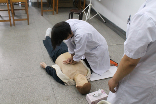 在此次培训活动中,大家详细的学习了如何判断病人、心肺复苏的指征、操作步骤、救助过程中的注意事项、复苏成功的指征等理论知识,并认真的观看了心肺复苏术演示。在培训结束后,大家逐一在模型前进行现场操作,针对操作过程中出现的错误及不规范动作,俞主任一一进行了纠正,直到科室人员对这项救助技能真正掌握为止。