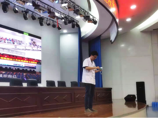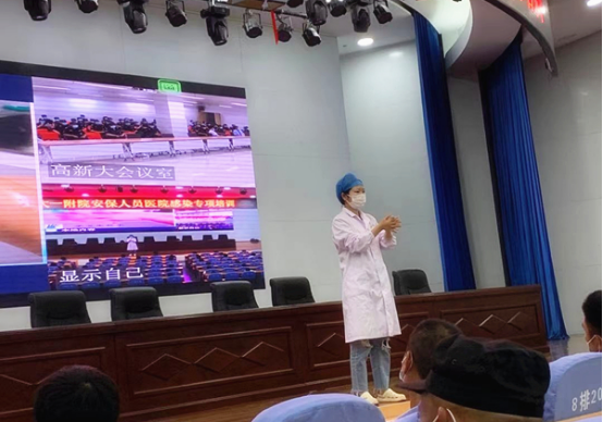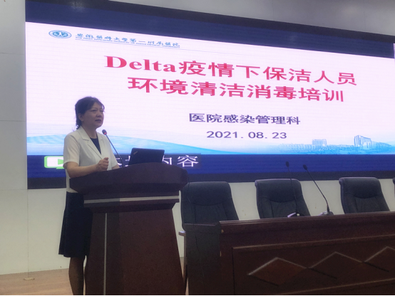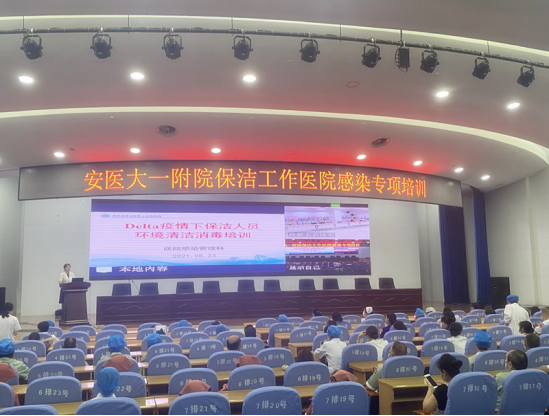 为全力做好我院当前新冠肺炎疫情防控工作,提高保洁、保安等后勤人员的感控意识,最大限度降低院内感染风险。8月23日和8月26日下午,医院感染管理科在本部内科医技楼4楼会议中心、高新消化内镜中心会议室分别对医院保洁、保安等后勤人员再次开展医院感染专项培训。全院保洁保安人员、医院感染监控护士、行政后勤监管人员、物业监管人员等700余人参加了培训。