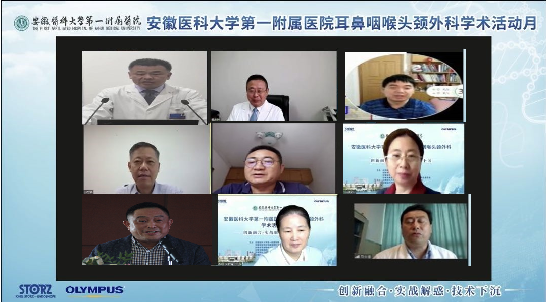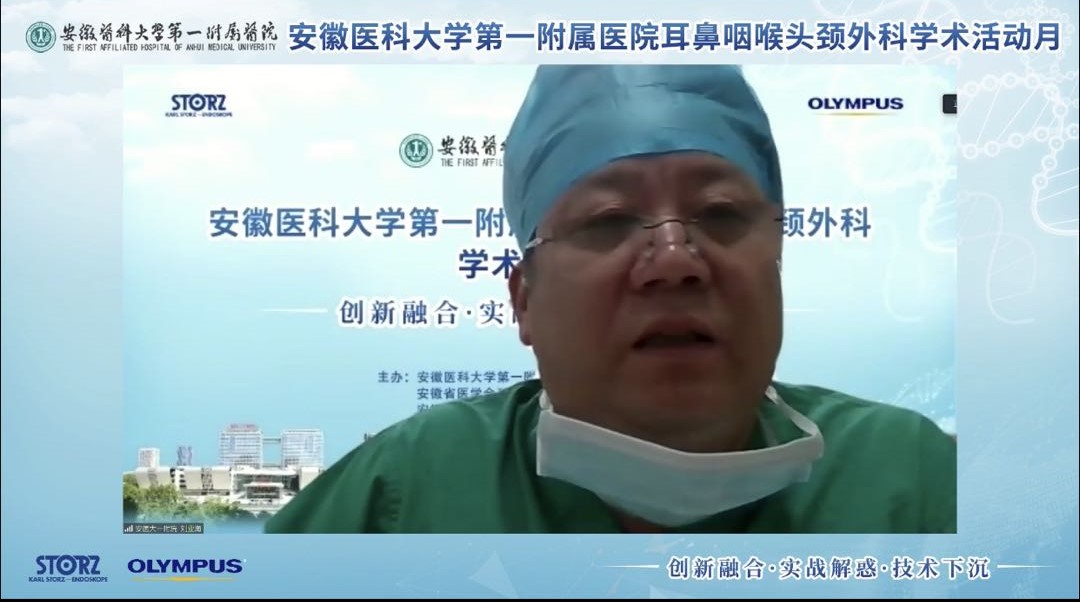 安徽省医学会学术会务部孙震主任在线上祝贺并致辞。我院耳鼻咽喉头颈外科主任刘业海教授主持开幕式并发表了热情洋溢的开幕词。