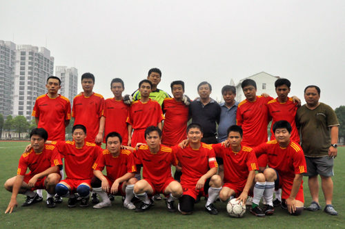 开场不久,中医一附院代表队利用我院代表队首场比赛立足未稳之际,率先攻破我队门将十指关,并在随后三分钟不到的时间内,再次利用混乱攻入一球,以2:0暂时领先。面对极为不利的局势,我队上下齐心协力,稳住阵脚,坚决服从教练意图,及时变换排兵布阵,打响了绝地反击。最终,在全体队员的共同努力下,在经历了多次对对方球门极具威胁的射门之后,终于由队长车云率先破门得分,全队群情激奋,士气大振,随后经过多脚传接配合,车云在禁区内再下一城,扳平了比分。在比赛终了前几分钟,前一天初为人父的鲁明典接队友传球,冷静射门,攻入制胜第三球。最终,我队以3:2反败为胜,战胜中医一附院代表队,赢得了“处子秀”。