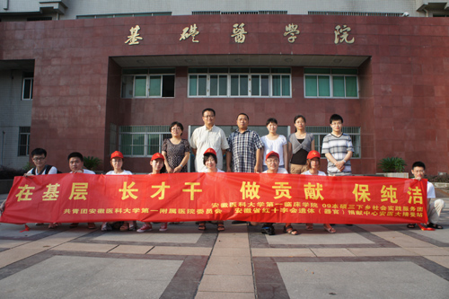 据悉,此次活动由安医大第一临床学院第二党总支组织实施,参观黄山地区社区卫生服务中心,座谈学习医疗服务中心的工作运行情况。在卫生服务中心为社区居民开展义诊咨询、健康体检服务、医疗卫生与夏季传染病知识宣教及遗体(器官)捐献知识讲座。同时,“暑期三下乡”团队的老师同学们还为当地居民进行了“保持党的纯洁性、迎接党的十八大”主题教育实践活动的宣教、安医大高考招生形势政策宣传、并对当地困难群众、困难学生进行走访,为他们捐赠了书本等文具用品。此次活动受到当地群众的一致好评。