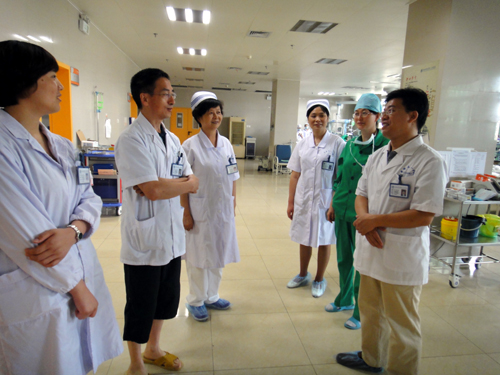 李家斌深入病房了解病人住院情况及对护理工作的满意度,他在肯定病区工作成绩的同时,希望护士长们继续加强管理,护士们加强学习,提高护理管理和护理技术水平,以更优质的护理服务促进医院的发展。护理查房过程中,护理部主任李伦兰要求各护理单元在高质量完成各项护理工作的同时,做好“三甲”复审准备工作。