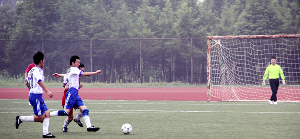 而在此前一天进行的与蚌医附院代表队的较量中,全队上下面对强敌压境,毫不畏惧,与对手展开面对面的积极拼抢,也给对方球门带来多次威胁,但是最终因技术、力量悬殊,终以1:4的比分输掉了比赛,雷宇攻入本队本场比赛唯一进球。