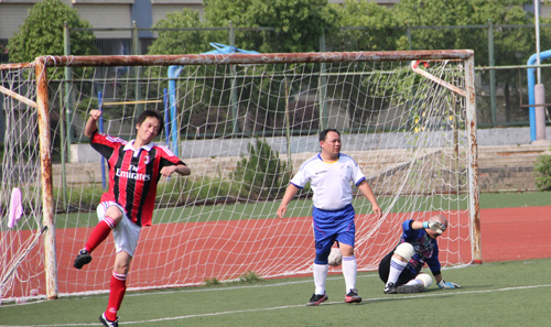 比赛当天天气异常炎热,烈日高悬,酷暑难耐,我院代表队的赛程被安排在当天为最炎热的下午第一场,但是全队上下不畏高温,不惧酷暑,按照教练组事先制定的进攻意图,积极跑动、拼抢,利用速度优势多次给对方球门制造威胁。而二附院球队在本场比赛也拼尽全力,积极对抗,组织了一次又一次攻击。最终,赵砚秋、顾振宇、雷宇各进一球,球队以3:1战胜对手,取得3分。至此,我院代表队以积9分、小组第二身份昂首进入第二阶段比赛,二附院代表队则遗憾被淘汰。