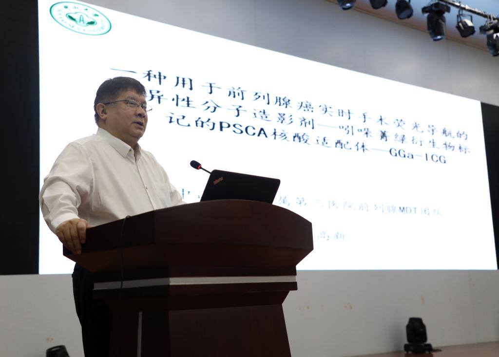 中山大学附属第三医院高新教授做《一种用于前列腺癌实时手术荧光导航的特异性分子造影剂—吲哚箐绿衍生物标记的PSCA核酸适配体—GGa-ICG》讲座,高教授着重介绍了前列腺癌手术过程中利用荧光造影剂在手术中实现实时导航功能,对前列腺癌组织及转移的淋巴结进行精准切除,减少手术损伤及切缘阳性率。同时,高教授还提出了“实时手术”的新概念,为前列腺癌手术提供了新的技术突破点。