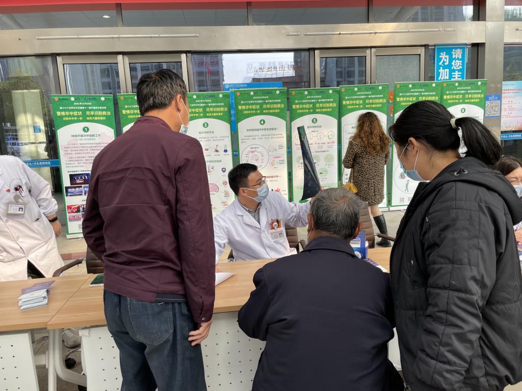 今年10月29日是第十六个“世界卒中日”,为贯彻落实《健康中国行动(2019-2030年)》和《国家卫生健康委疾控局关于开展2021年“世界卒中日”宣传活动的通知》等文件要求,我院神经内科于10月29日上午在院本部和高新院区同时举行了“世界卒中日”义诊活动。本次活动主题是“警惕卒中症状,尽早识别救治”,口号是“识别卒中早一秒,挽救大脑恢复好”。
