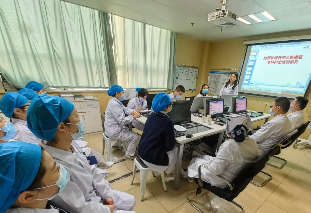 最后,在干部呼吸与危重症学科主任范晓云的带领下,各科专家下到病房对来自全国各地的心肺康复专科护士进行手把手教学与指导。