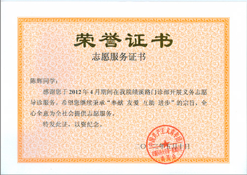 据统计,本次活动共计为超过千位前来就诊的患者及其家属提供了协助寻找门诊科室、填写患者信息表、交款取药、演示自助挂号机、自助化验单机的操作等,并主动为老、弱、病、残患者提供各项优先服务。这些活动得到了门诊患者及家属的一致好评。第二十三团支部的团员青年们也纷纷表示,虽然此次志愿导诊工作暂告一段落,但是大家仍然在“学雷锋在行动”的旗帜引导下开展各种青年志愿者活动,为广大患者服务。为表彰口腔医学院青年志愿者的工作,鼓励更多人加入志愿者的行列,院团委向参与此次志愿活动的同学颁发了“志愿服务证书”。(团委、第二十三团支部)
