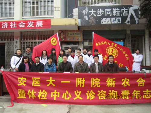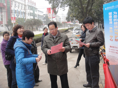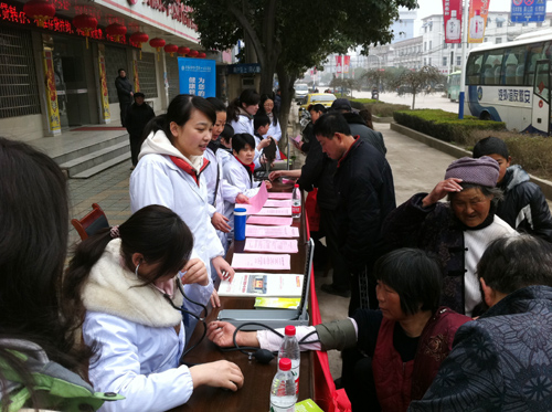 水湖镇是长丰县政府所在地,常住居民较多,目前大部分居民已经参与了合肥地区基本医疗保险,此外长丰县农村人口也全部参加了新型农村合作医疗保险,但大部分农民朋友对政府医保政策及我院的医保相关具体措施仍不甚了解,而我院的病人有70%以上来自农村,为帮助广大农民朋友更好地了解医院的相关医保措施,放心到我院就诊,同时为拓展医疗市场,推介医院健康体检中心品牌,吸引更多农民朋友前来健康体检,院团委与医保办、体检中心共同决定,响应医院党委“学习雷锋在行动”的号召,将学习雷锋精神化为点滴的实际行动,履行白衣天使的天职,赴长丰县为当地农民朋友开展咨询及义诊志愿服务。17日上午,院团委一行人为当地广大农民朋友开展了测量血压、义诊咨询、现场讲解、答疑解惑、散发宣传材料等活动。农民朋友们纷纷表示,感谢安医大一附院开展这个活动,带来了很详细的政策解说,使得大家能够充分了解医保政策,掌握了医保报销比例等最为关心的知识。同时在家门口就能够享受到先进的体检,了解自身的健康状况,为大家带来了实实在在的服务。