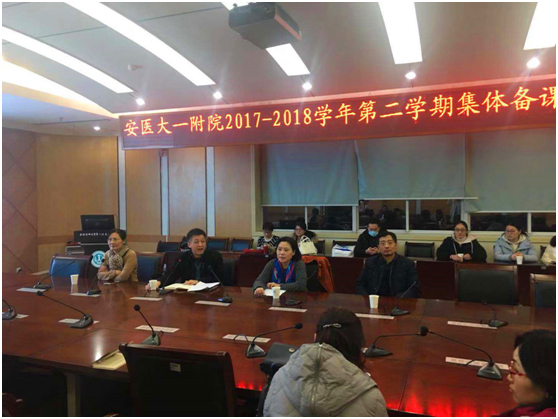 2019年2月21日晚,安徽医科大学第一附属医院内科学教研室在干部保健中心二楼会议室举行2018-2019学年第二学期教师集体备课及青年医师试讲活动。来自心内科、消化内科、肾脏内科、内分泌科以及眼科等兄弟科室的三十余名医师参加此次活动。副院长王珩、教育处处长陈明卫、内科学教研室主任王佑民、内科学教研室副主任陈熙、周碧蓉等出席会议。活动由王佑民教授主持。 王珩副院长致辞,她强调了医学教育教学中积极备课及授课试讲的重要意义,并希冀内科教研室的各位老师能够锤炼授课技巧、提高教学质量,使其教学水平成为全院教学的典范。