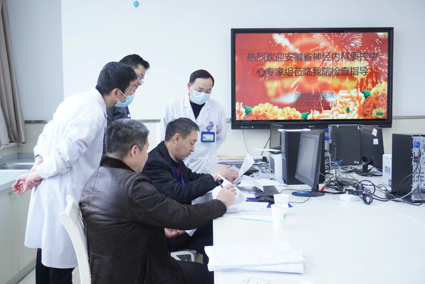 评估工作分为两个阶段进行:第一阶段各医院上报2021年急性脑梗死溶栓、取栓治疗一览表数据;第二阶段我中心选取5个地级市、抽取一个市以及2家省级单位进行现场检查。在完成第一个阶段数据采集后,中心主任汪凯组织神经内科质控中心委员,分为三个检查组,开展现场评估工作,并在检查前举行线上沟通交流会,确定评估标准及评估流程。2022年1月18日-21日,三组质控检查专家组遵照省卫健委评估工作要求,不要陪同、不听汇报、不做宣传,直接查看病房现场及相关资料,根据脑血管病质控标准对选取的医院开展评估检查,检查意见现场反馈,1月21日现场评估工作圆满完成,并将评估结果汇总形成评估报告,上报至省卫健委。