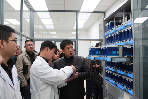 在市二院领导的热情接待下,许主任一行先后参观了市二院门诊药房、住院药房和静脉用药调配中心,详细了解了门诊自动发药机、住院自动单剂量分包机等设备的运行状况及有效提高了药品发放效率的自动调配系统,先进的设施设备、宽敞的工作环境、科学的规划设计给参观人员留下了深刻的印象。