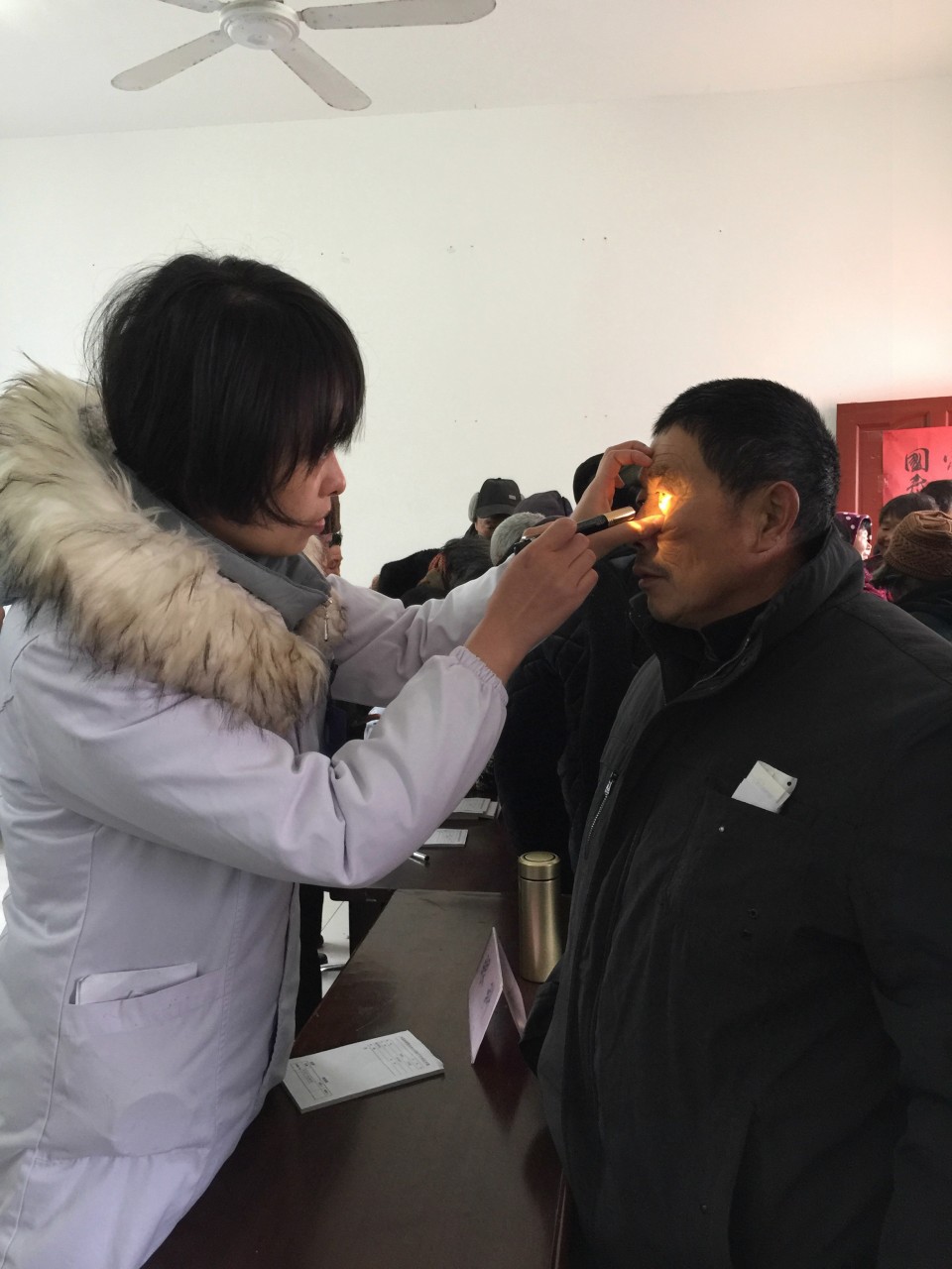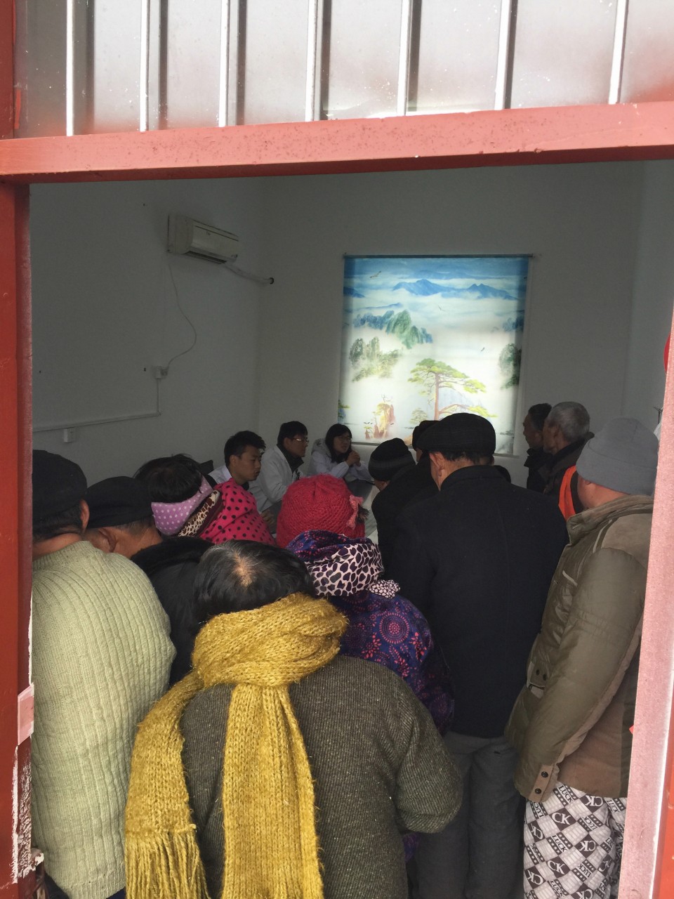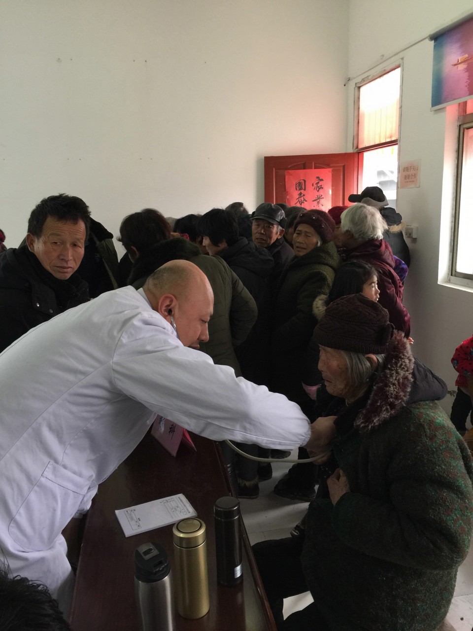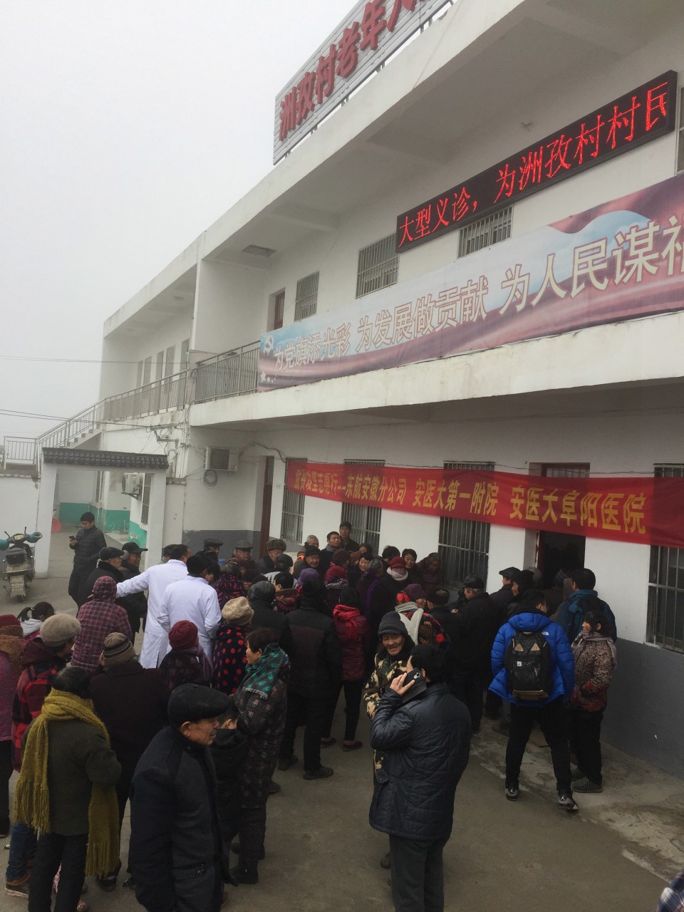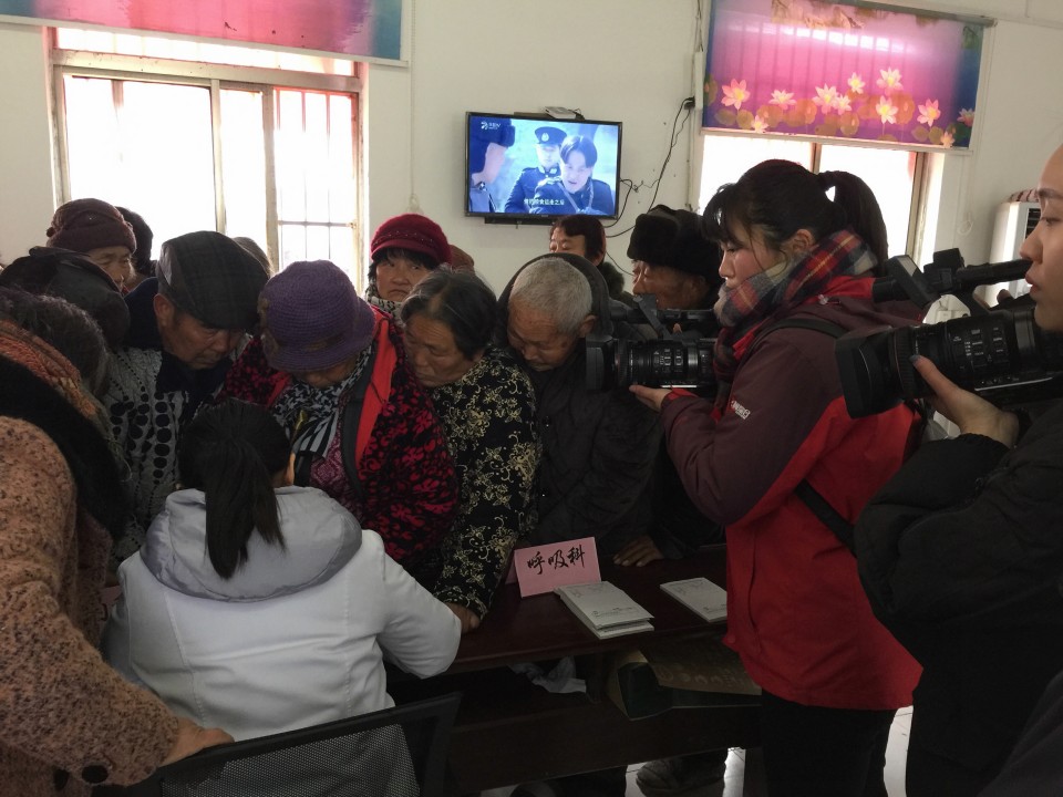 活动当天,广袤的皖北土地上笼罩着浓浓的雾霾,阴冷的天气让室内也只有8°左右,但是这里艰苦的环境既没有阻挡住百姓们求医问药的渴望,更没能阻挡住青年卫生志愿者们为贫困村卫生扶贫的热情。临时由活动室改造的大诊间早已被热情地村民们挤了个水泄不通,甚至连义诊的医生都差点挤不进去。青年卫生志愿者们刚一落座,就被村民团团围住,七嘴八舌的询问起病情来,青年医生们耐心地一一解答诊治,为有需要的患者提供免费药品,仔细地解释如何服用。十里八乡的百姓们听闻省城大医院的专家来送医送药,一传十十传百,纷纷赶来,整场义诊活动一直从早上八点半持续到十二点才基本结束。