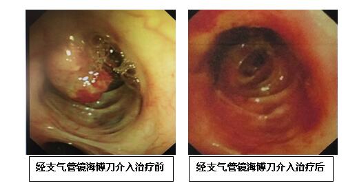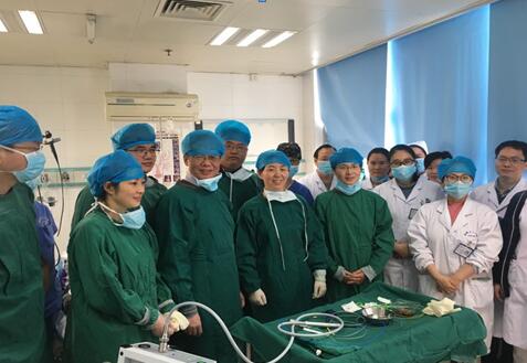 据干部呼吸与危重症学科主任刘荣玉介绍,呼吸内镜下介入治疗技术是近年来新兴的学科方向,已经在各级医院逐渐开展。海博刀系统在消化内镜应用较多,而在呼吸内镜下应用甚少,仅在数家大型医院开展,每年开展例数10余例,省内更是空白。我院干部呼吸与危重症学科成功实施的该例手术系全省第1例,填补了院内及省内空白,在国内也属领先水平,标志了我院在呼吸介入治疗领域迈上新的台阶。