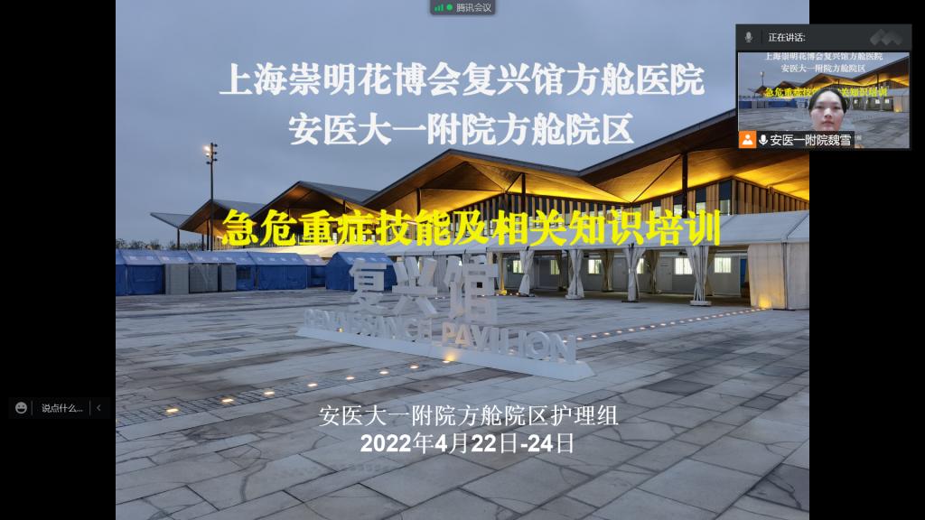 为了贯彻安徽方舱医护工作总体思路(16字原则):分级分类、照护抚慰、重点监测、对症治疗,依托方舱内软硬件支持,以专科护士为主导,提高舱内救治重症患者及处理突发事件的能力,4月22日-4月24日18:00-20:00上海崇明花博会复兴馆方舱医院安医大一附院方舱院区护理组开展了为期三天的方舱急危重症理论与技能培训,全体122位护士完成培训并通过考核。