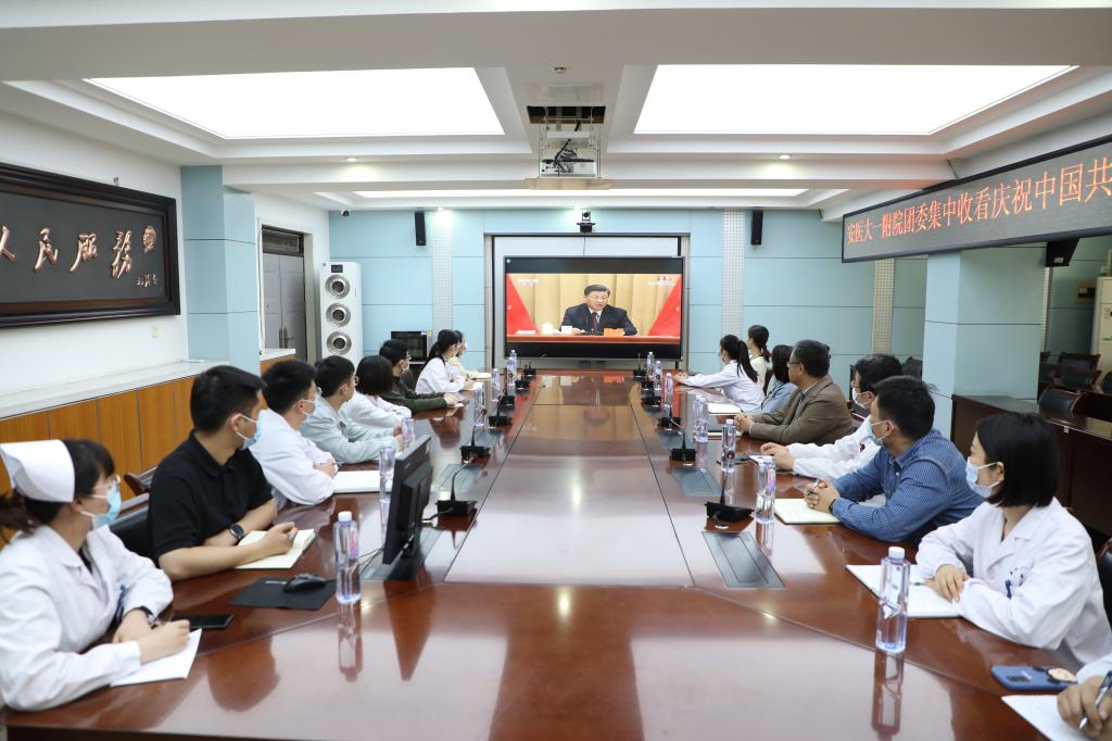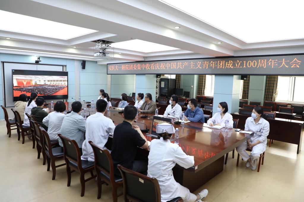 医院团委在行政楼五楼第二会议室组织集中收看庆祝中国共产主义青年团成立100周年大会,院团委书记黄尧、院团委委员、各基层团委书记、机关团委青年团员团干代表参会观看。全院医教研管等各岗位团员青年通过多种方式收看了大会,并就习近平总书记在大会上的重要讲话展开热议,纷纷表示将牢记习近平总书记的嘱托,以青春之我,创造青春之中国,在青春的赛道上跑出当代青年的最好成绩。援沪医疗队的团员青年在上海也参加了大会收看。
